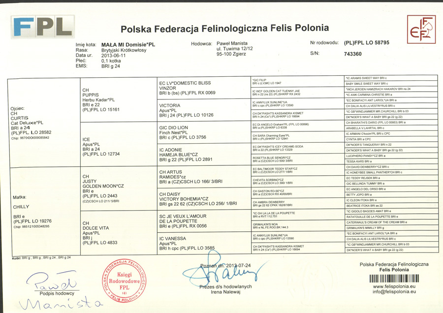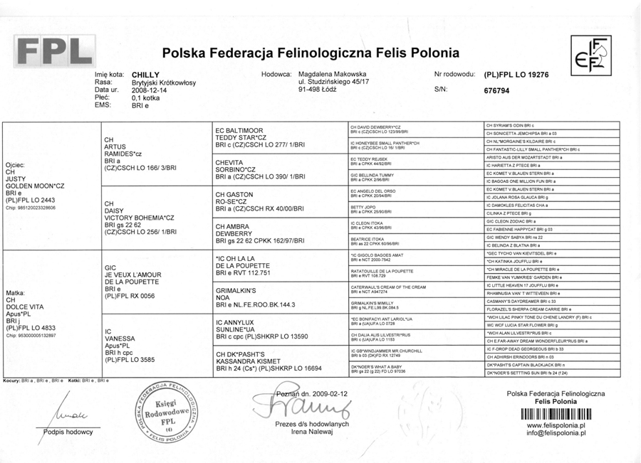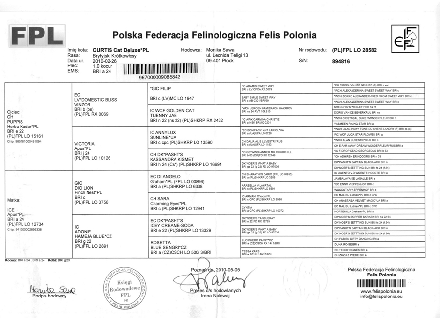 | Ojciec: | Curtis Cat Deluxe*PL (BRI a 24) | |